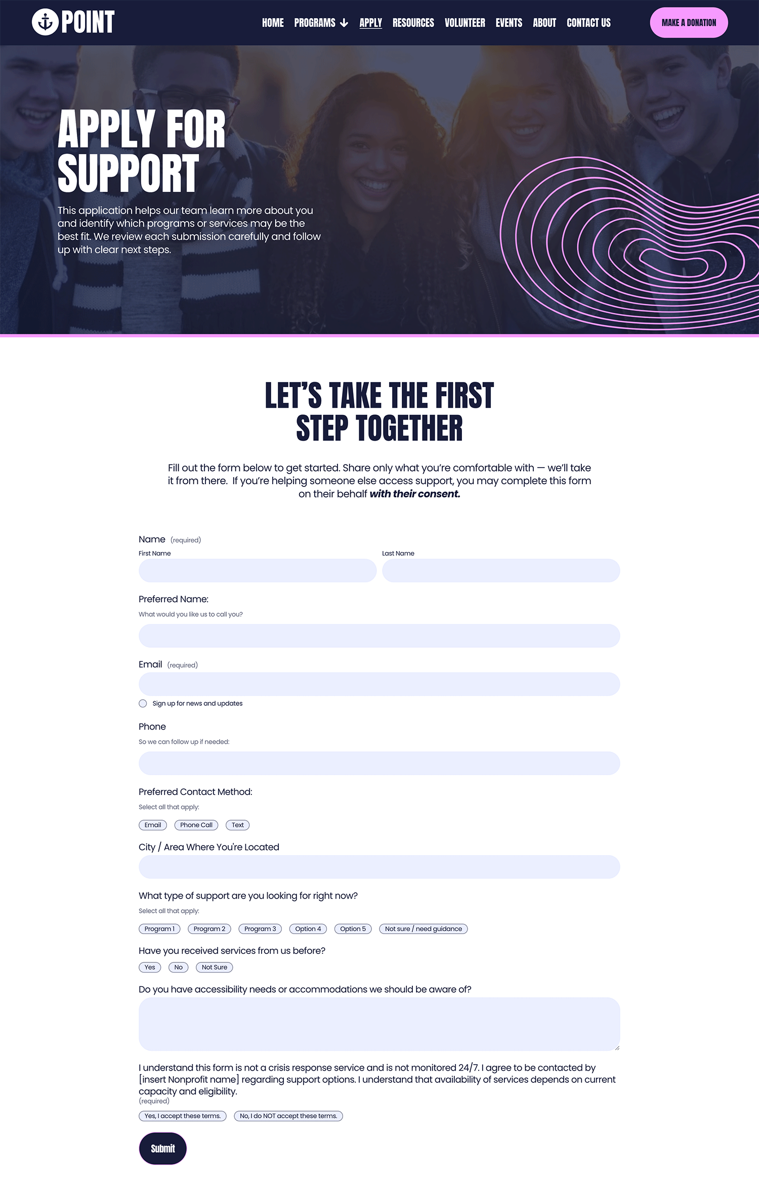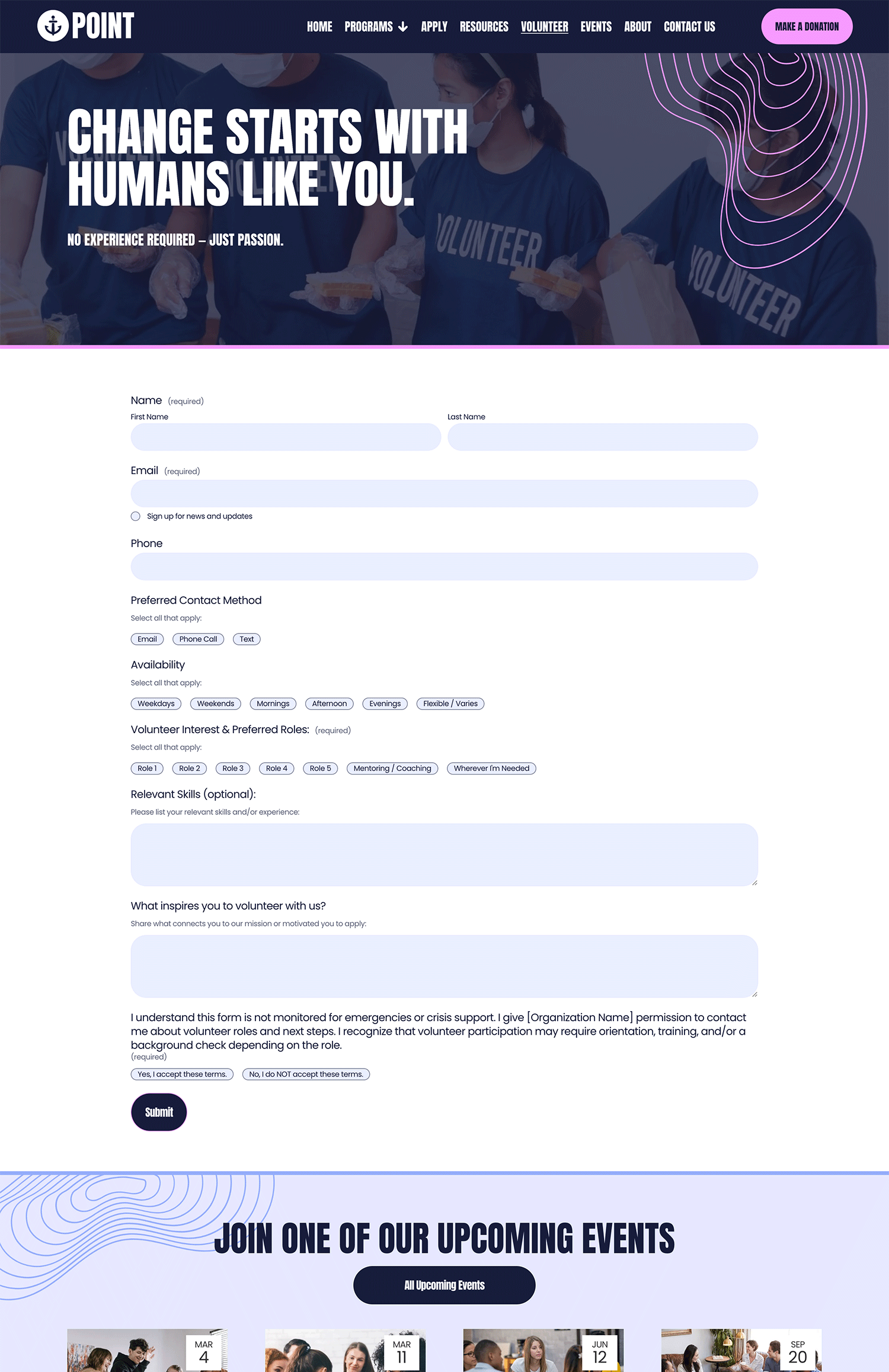 volunteer page and application