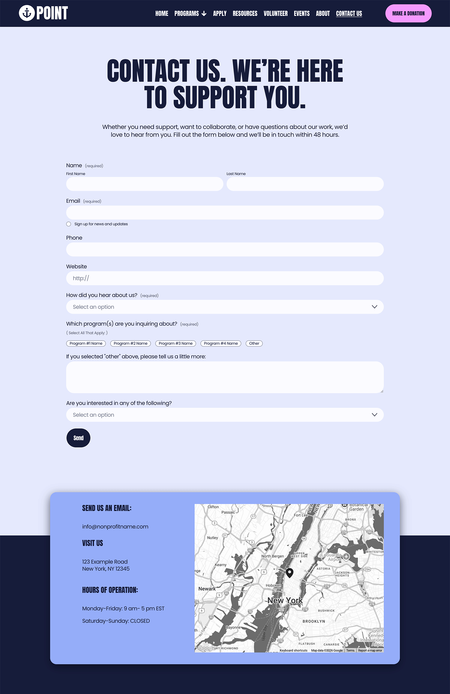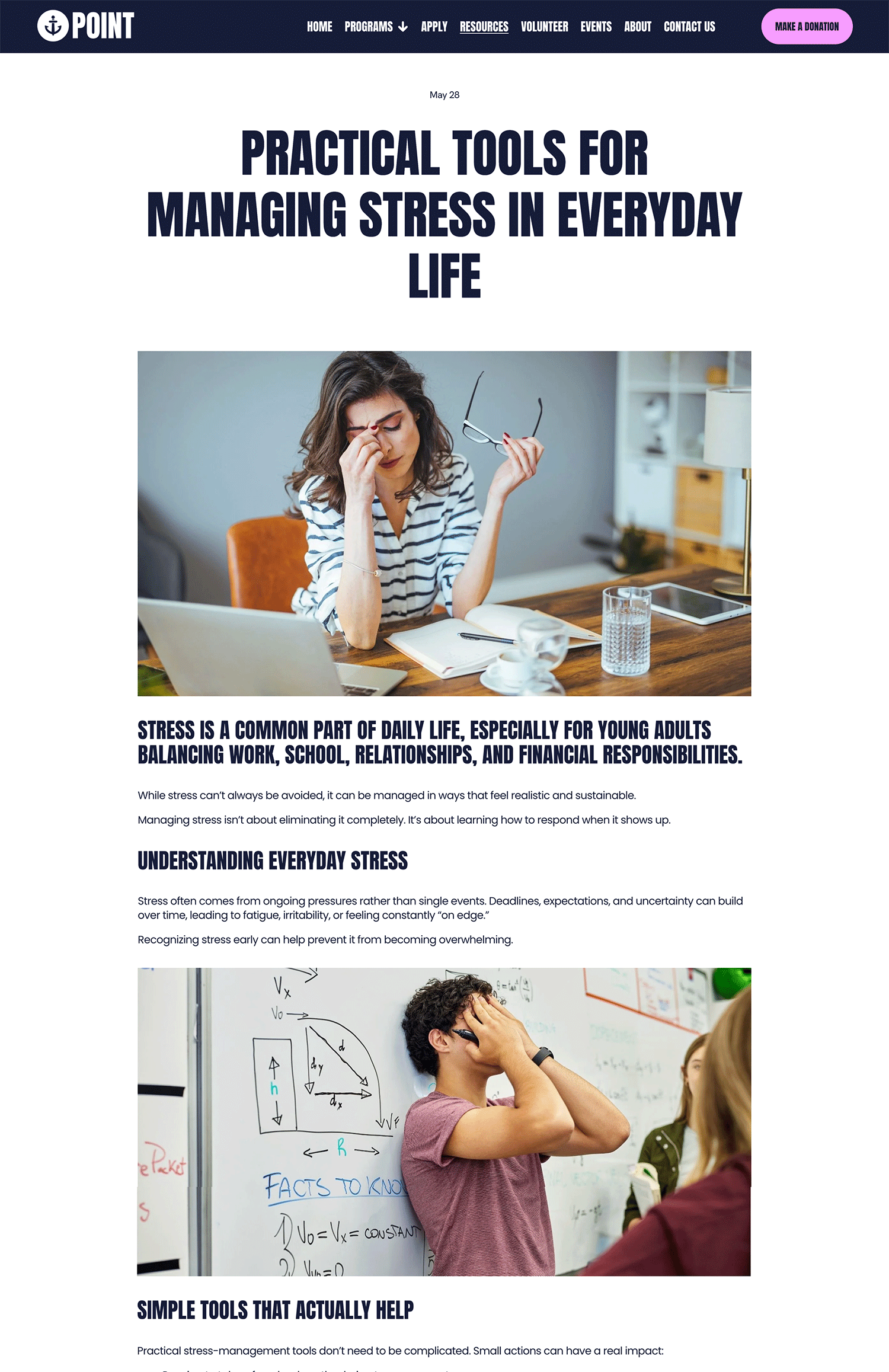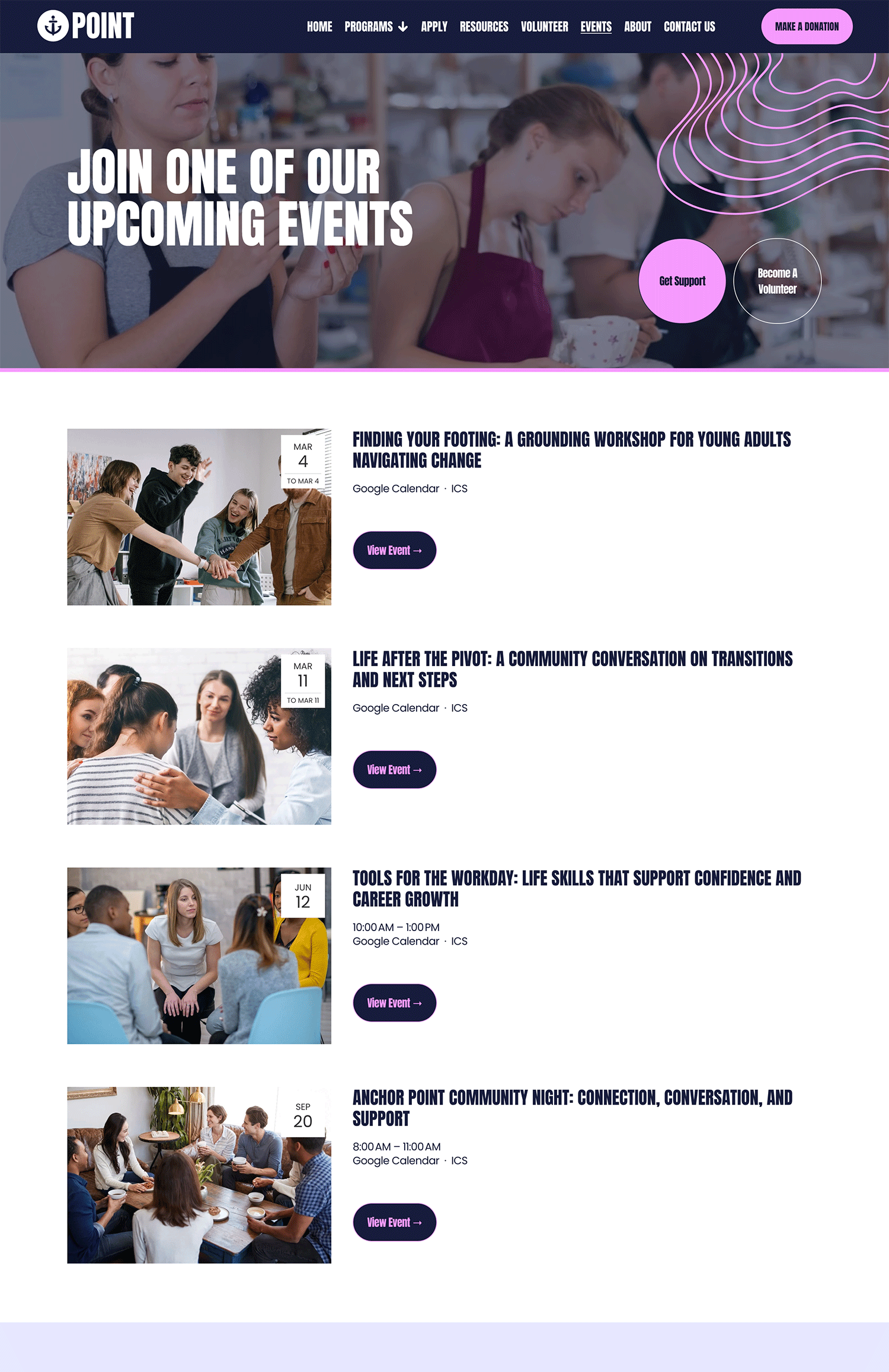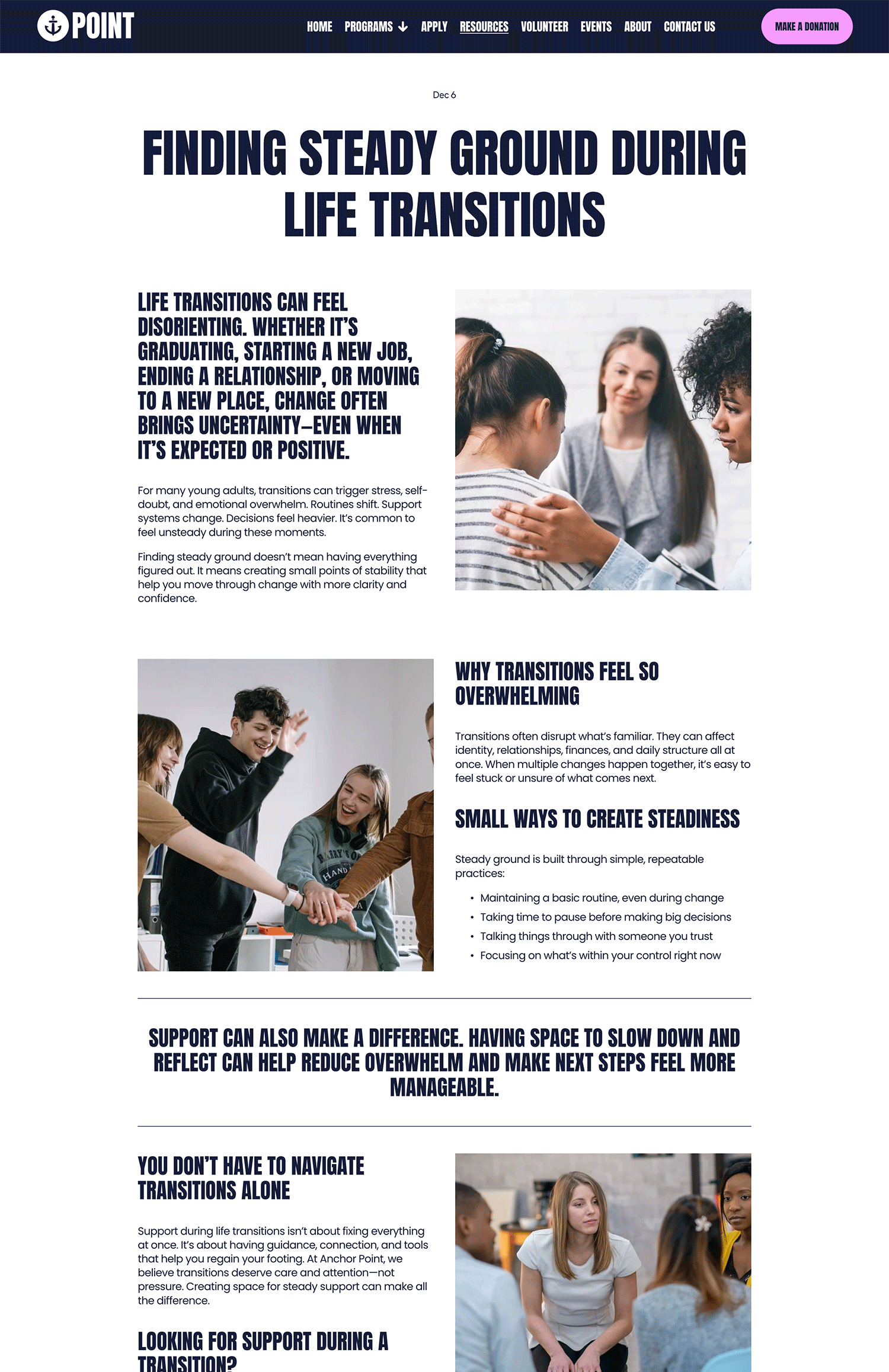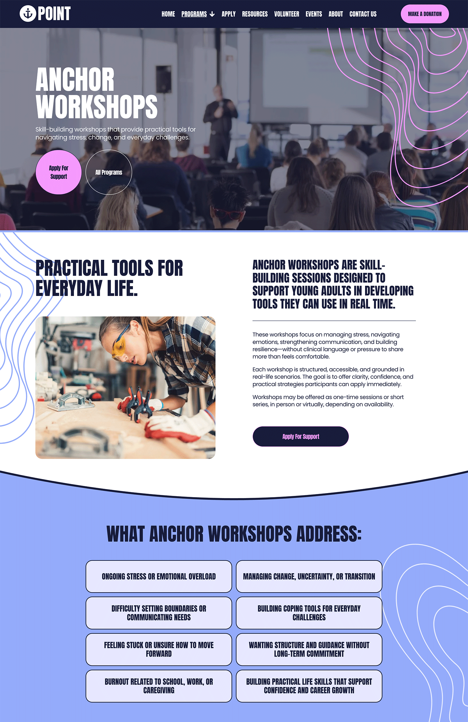 With bold design, clear typography, and vibrant visuals, Anchor Point creates a modern, approachable website that resonates with younger audiences while staying accessible and easy to manage in-house. Each page is designed to clearly explain your work and guide visitors toward meaningful next steps.