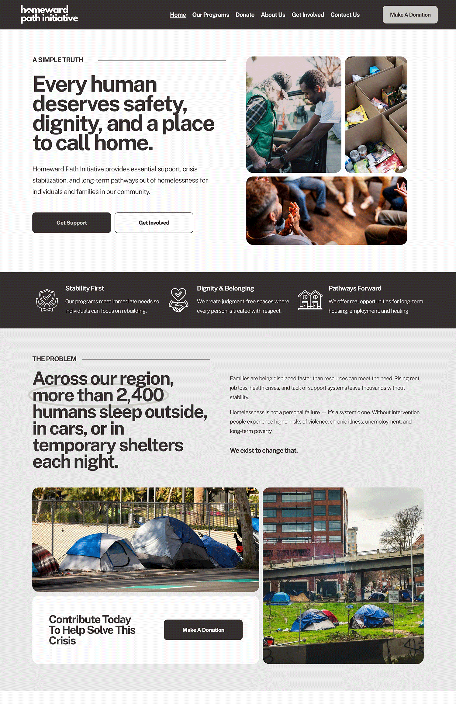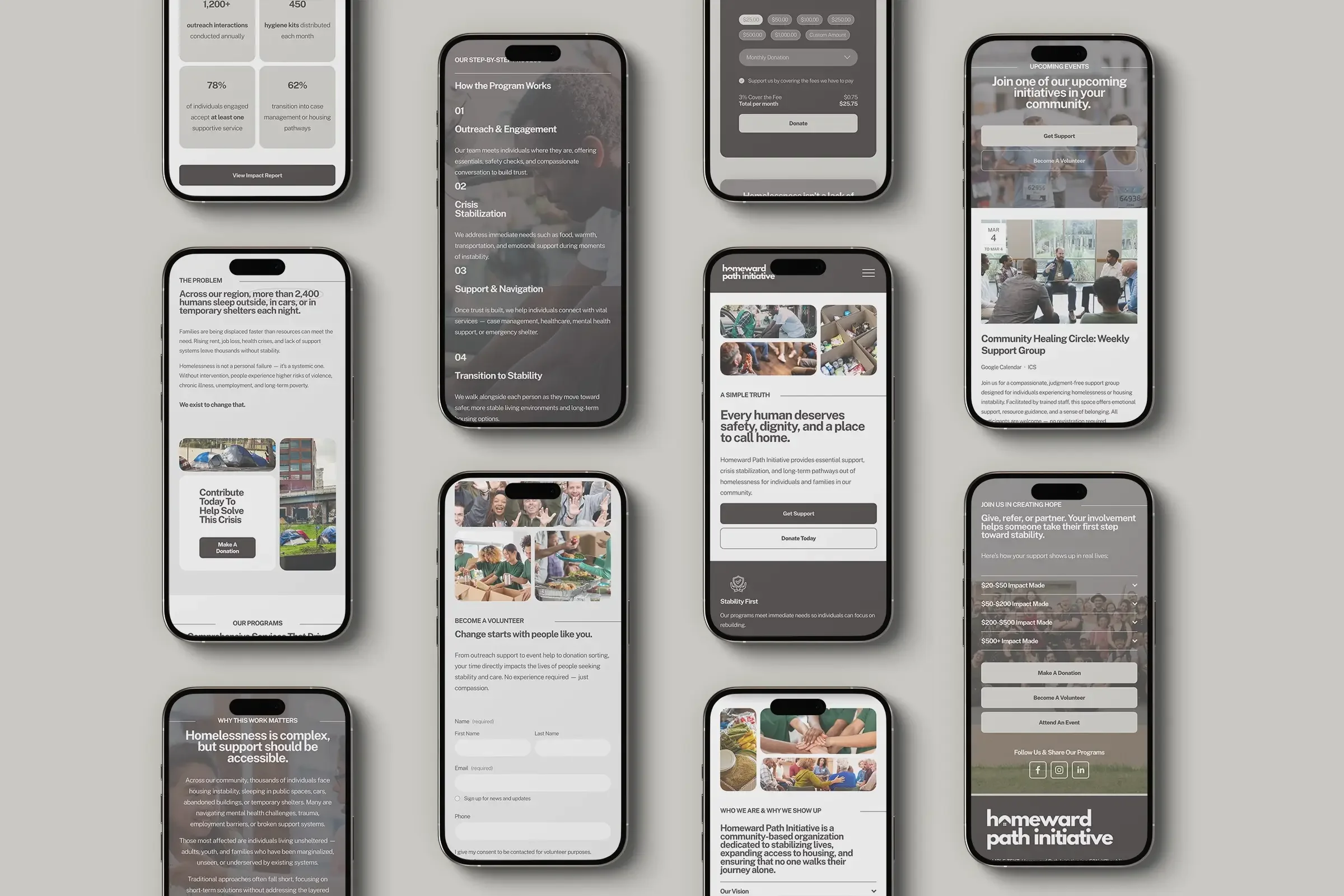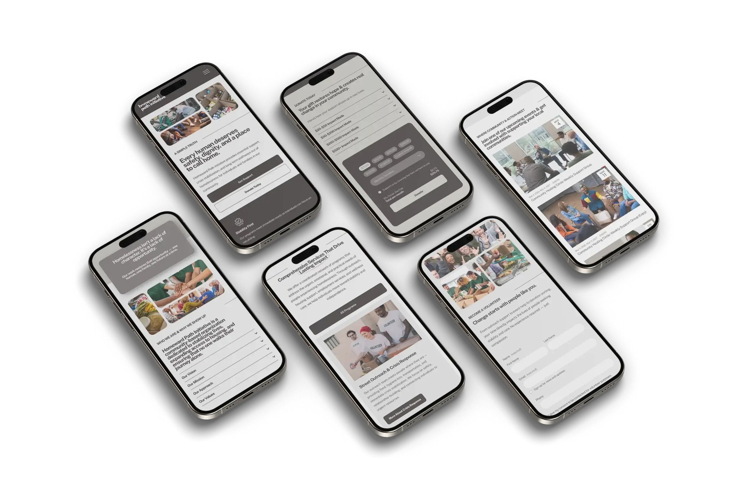Homeward Path features a clean, neutral design that supports clarity, accessibility, and credibility. Built for adult audiences and easy in-house management, each page helps nonprofits clearly explain their services and encourage engagement, support, and connection.