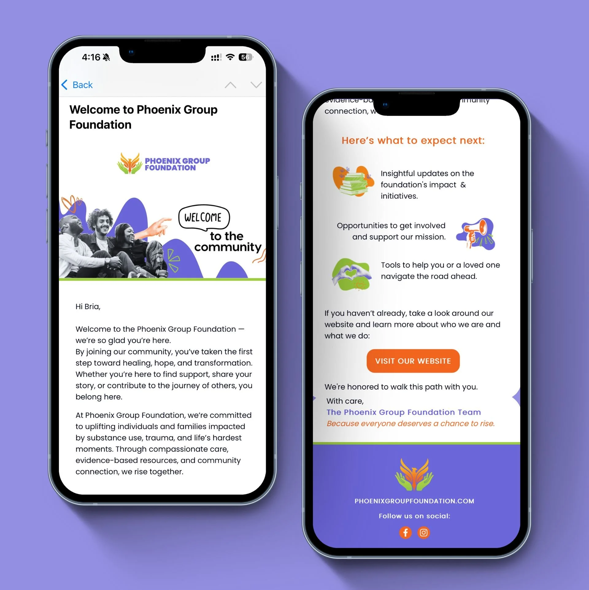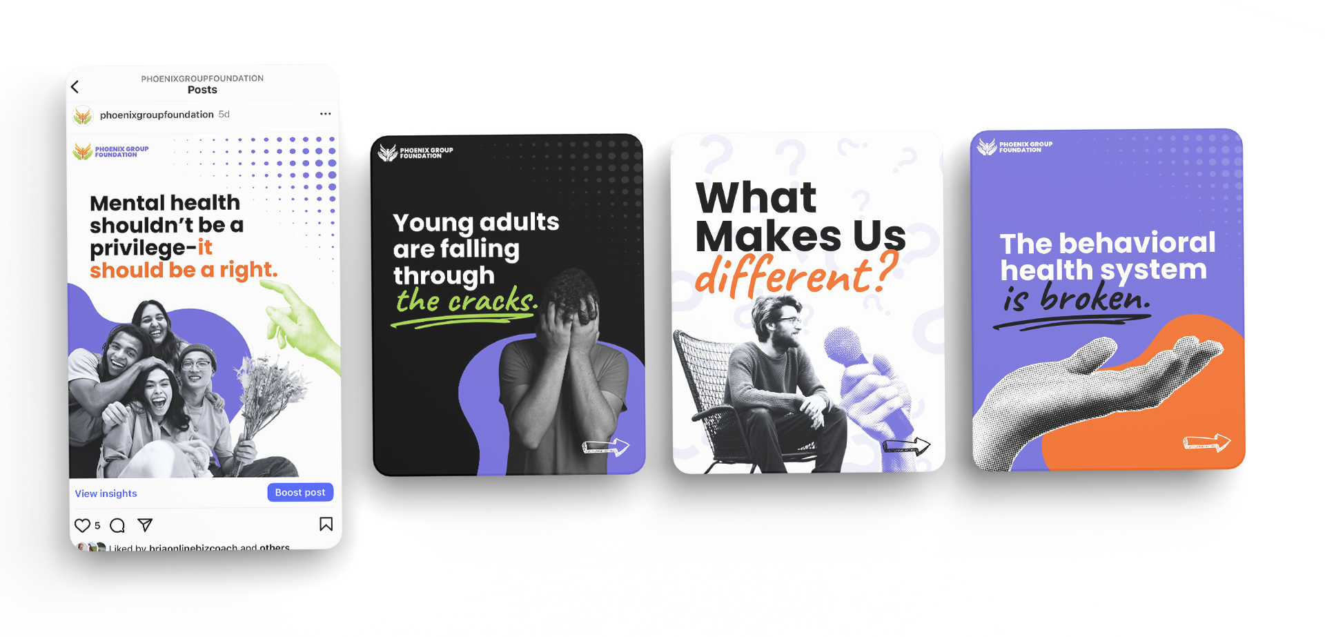 Phoenix Group Foundation is a national nonprofit reimagining behavioral health care for young adults and families impacted by mental illness and substance use disorders. We partnered with the organization to craft and execute a comprehensive brand, website design and marketing strategy that builds awareness, drives donor engagement, and supports the development of their flagship initiatives.